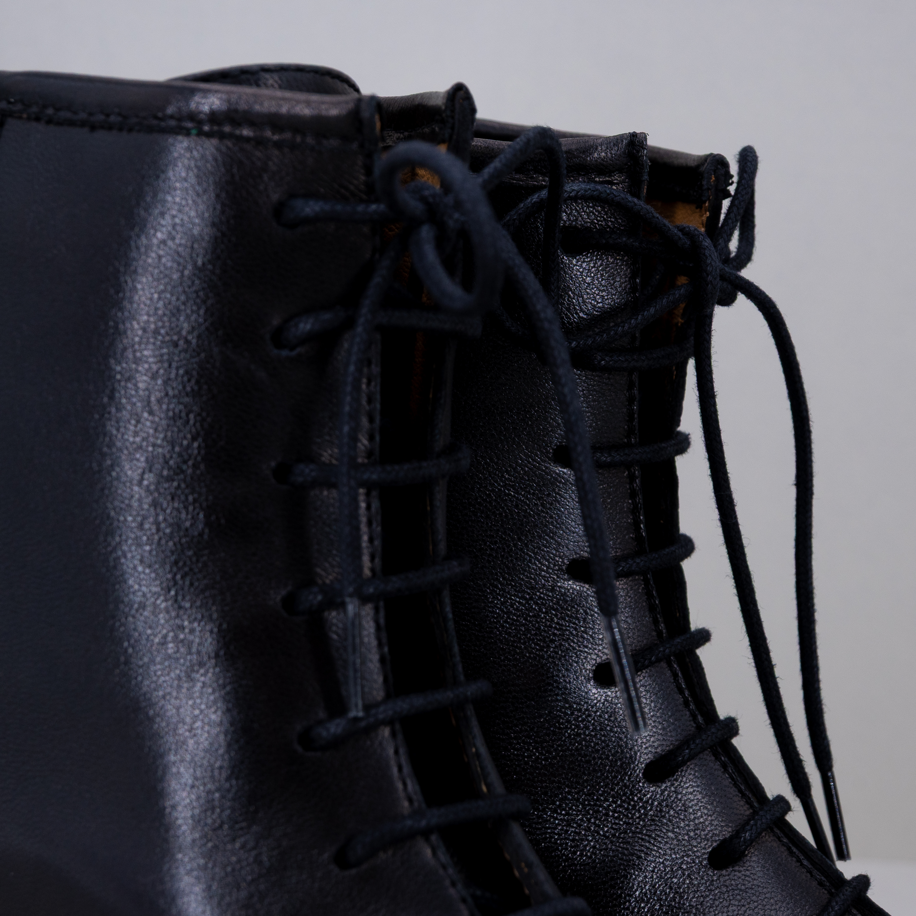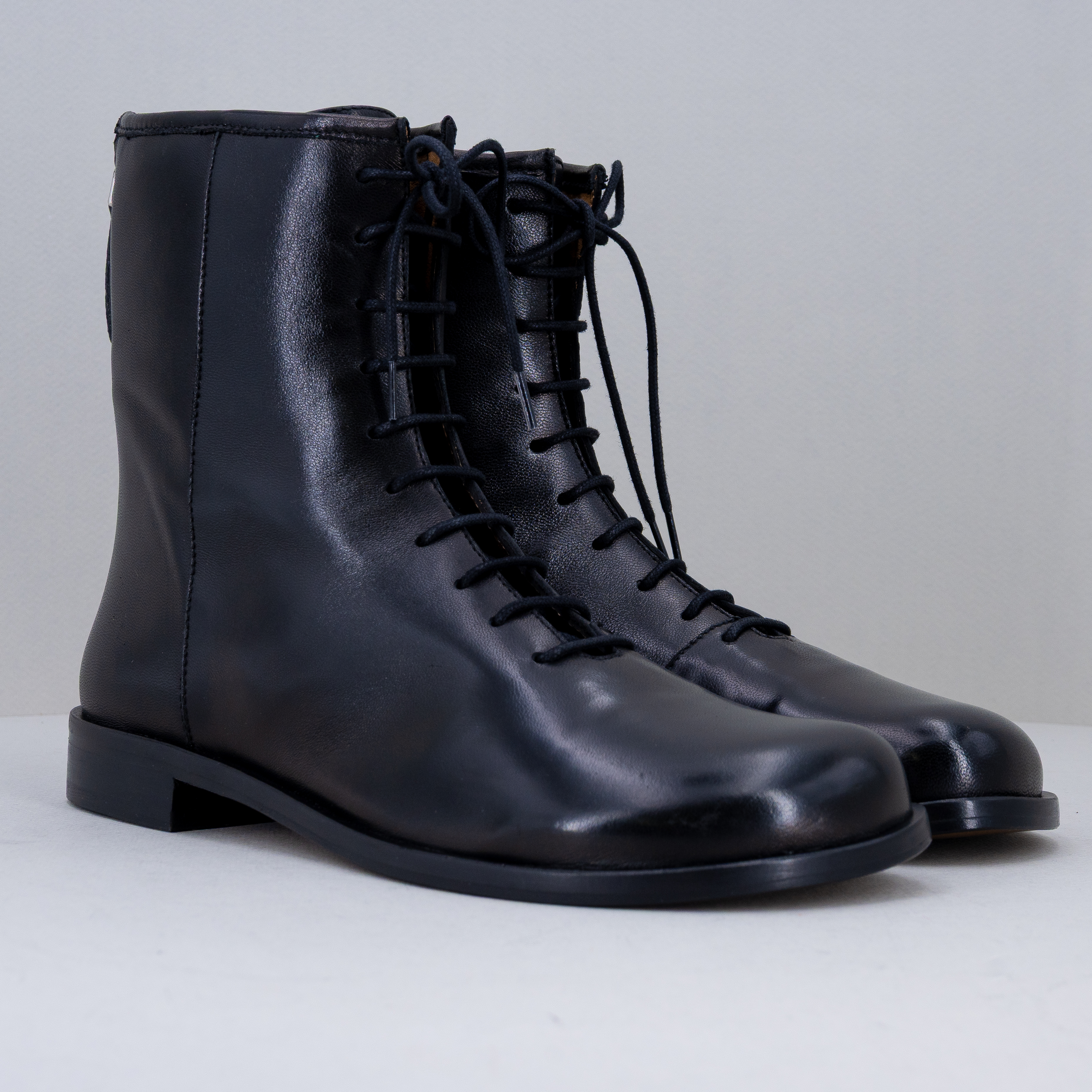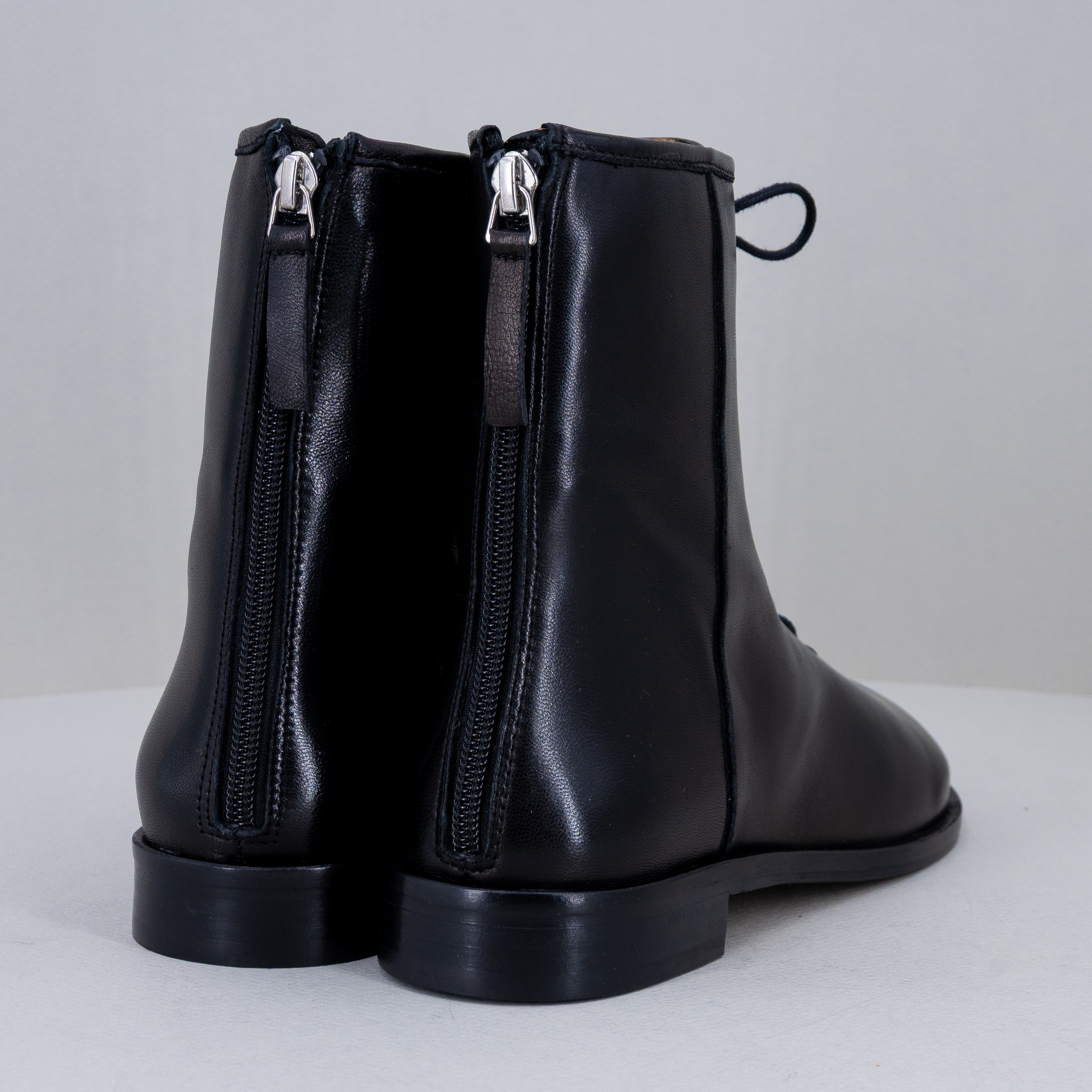 Audley stivaletto in vera e pregiata pelle con tacco basso, zip e lacci stile anfibio.