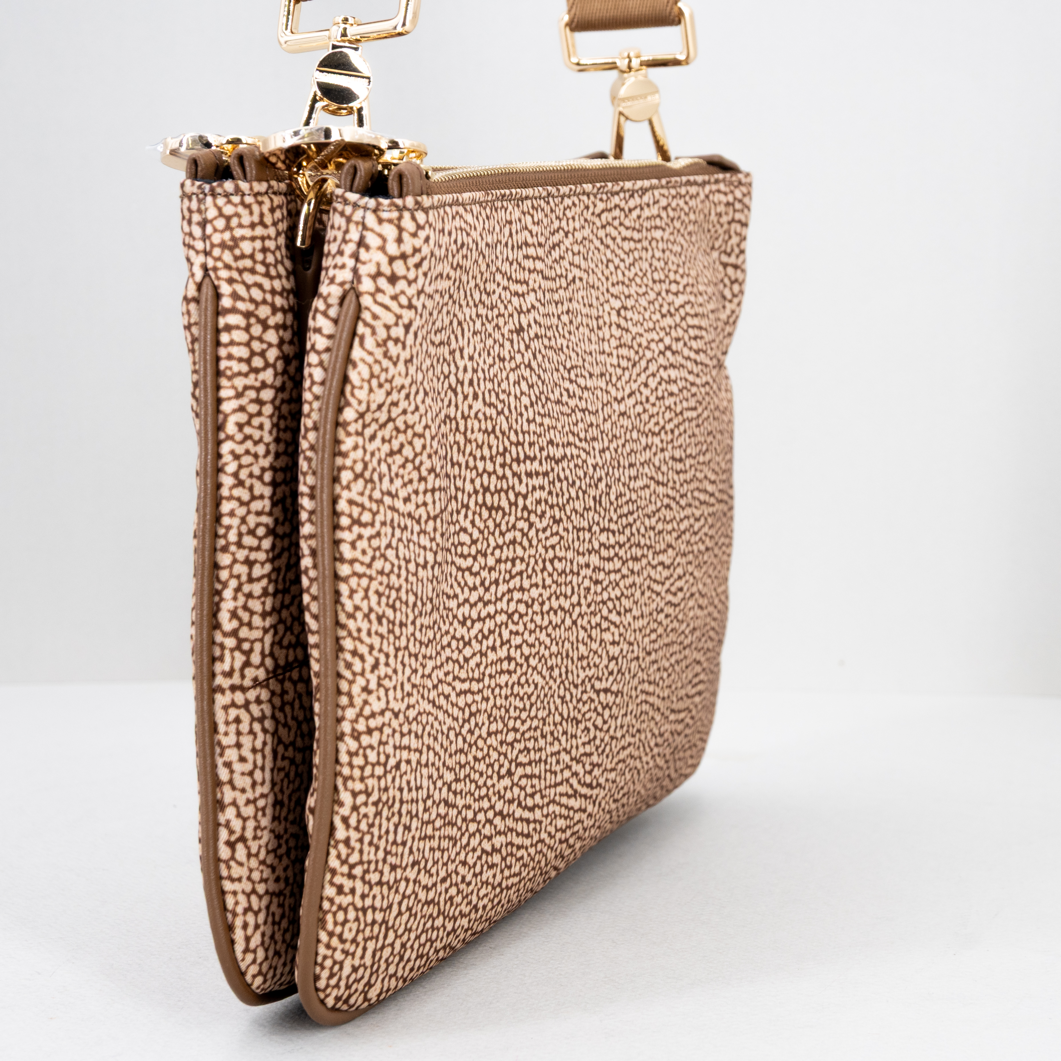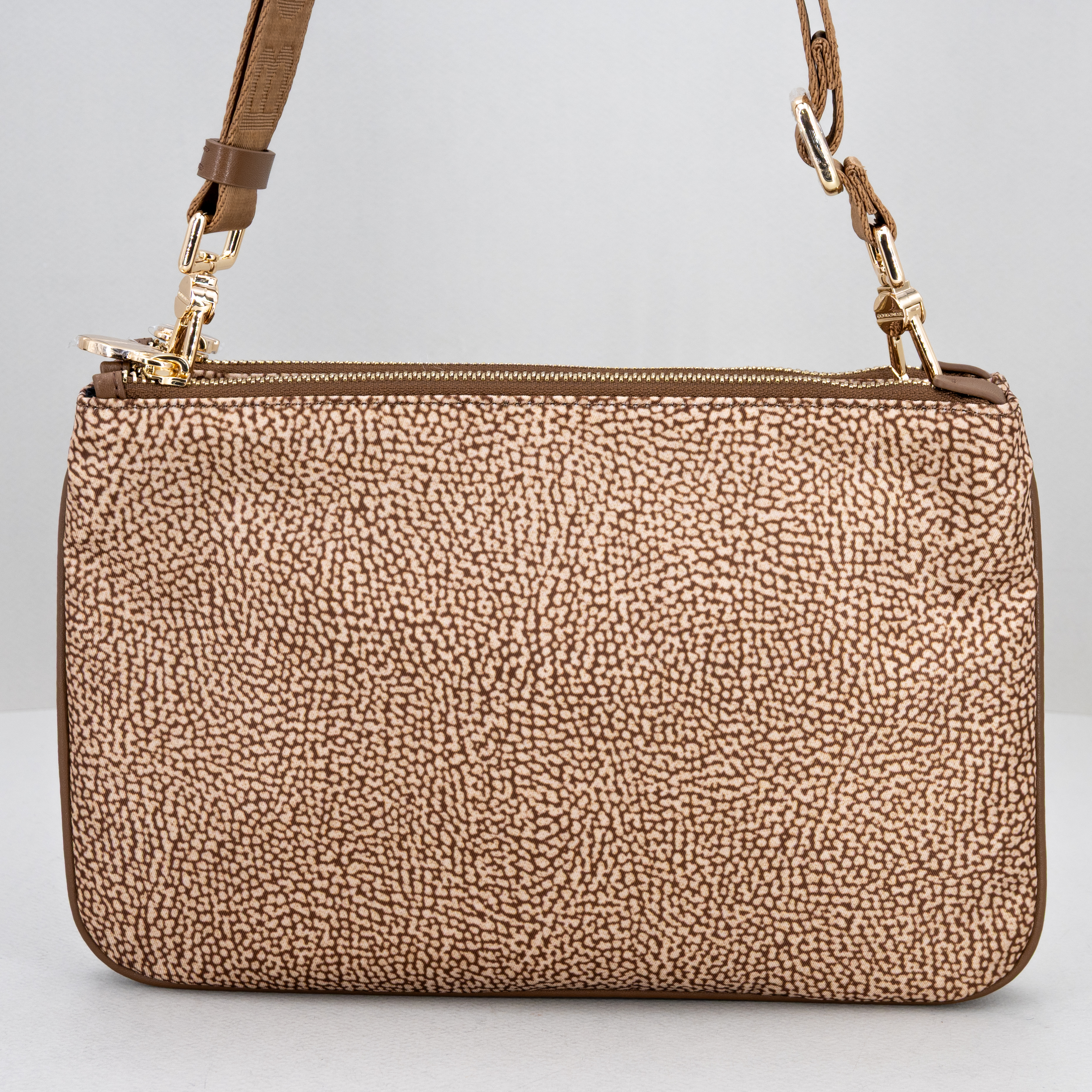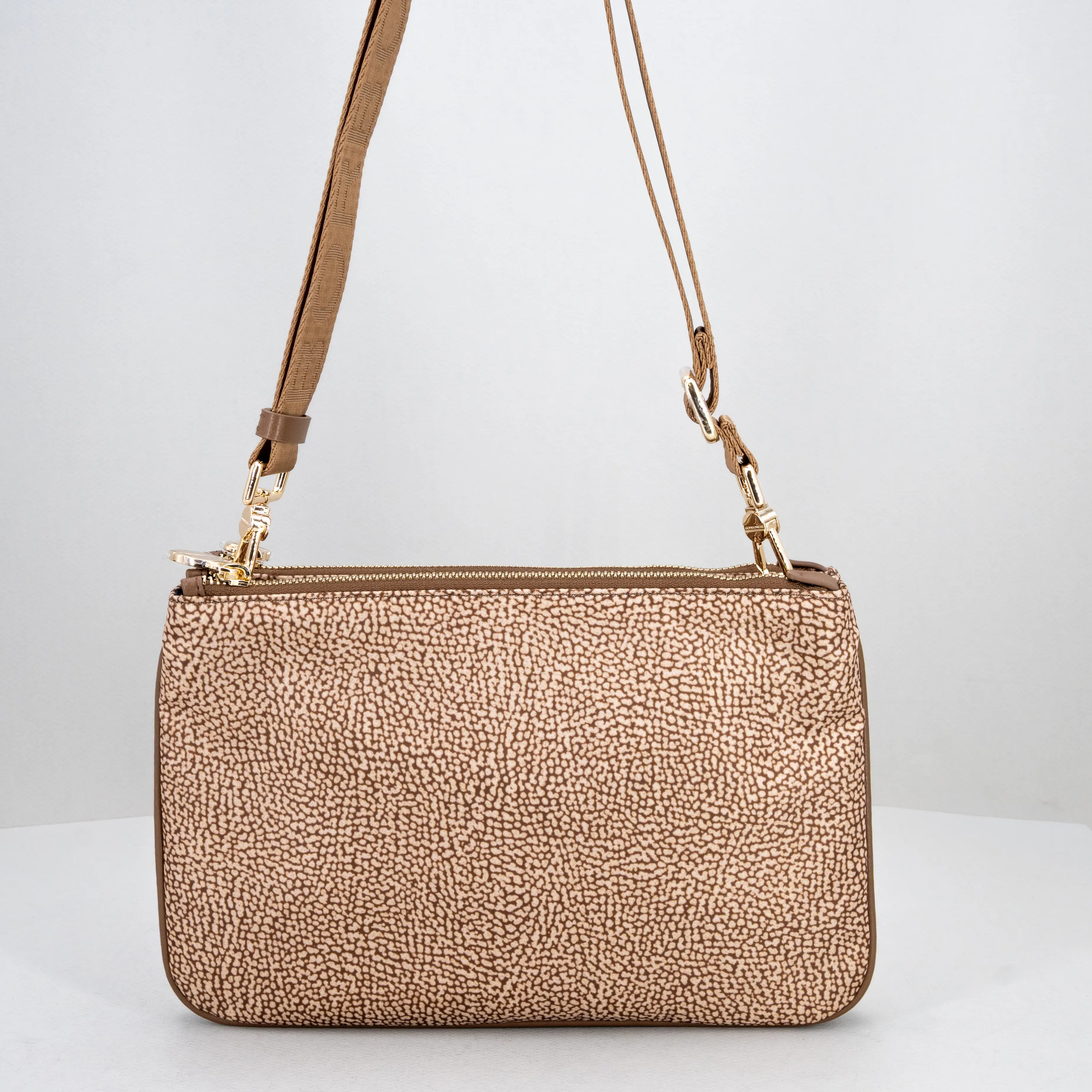 Pratica borsetta da donna, di Borbonese realizzata in nylon ecosostenibile e dettagli in pelle, nuovo colore beige marrone.