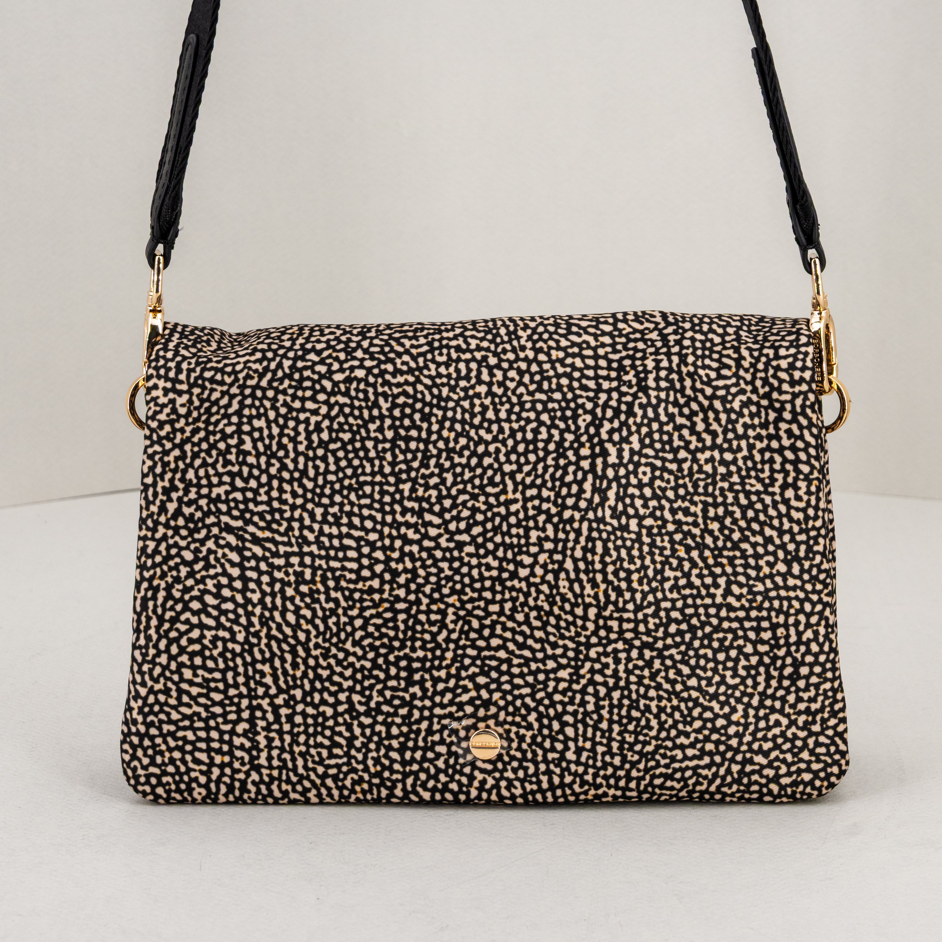 Mini bag di Borbonese ideale anche come portacellulare, all’interno sono presenti due scomparti di cui uno chiuso da zip.