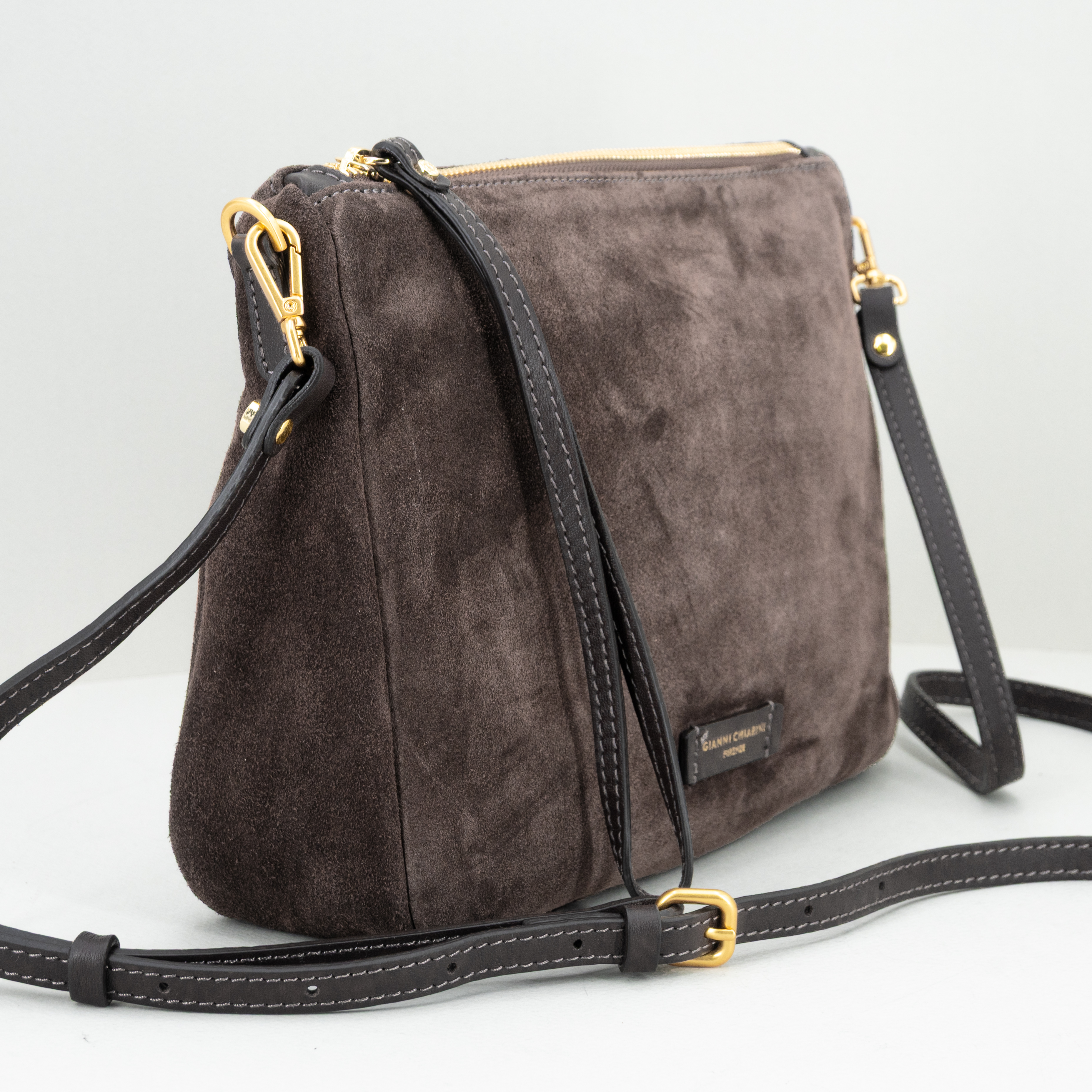 In pregiata e resistente pelle scamosciata color moka.