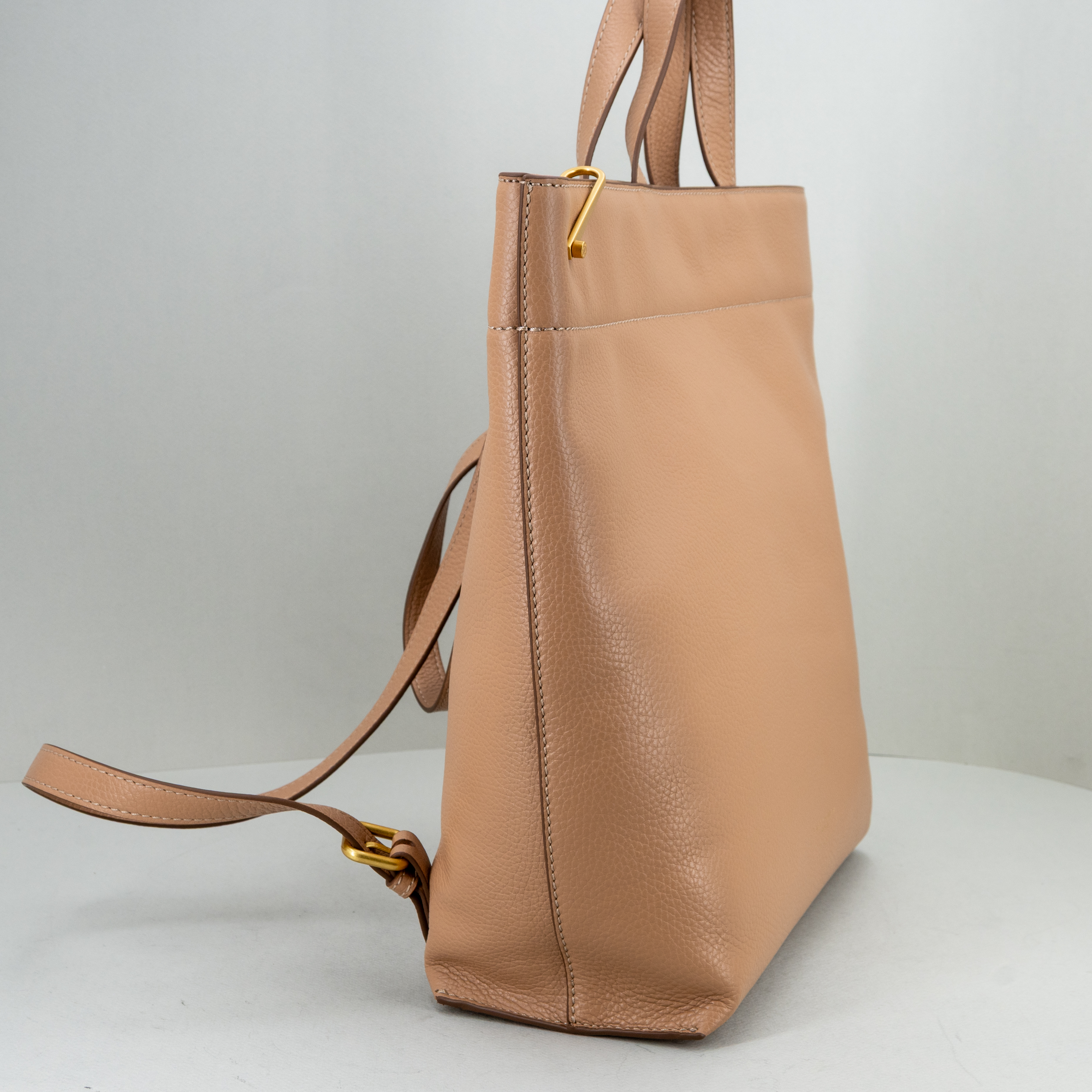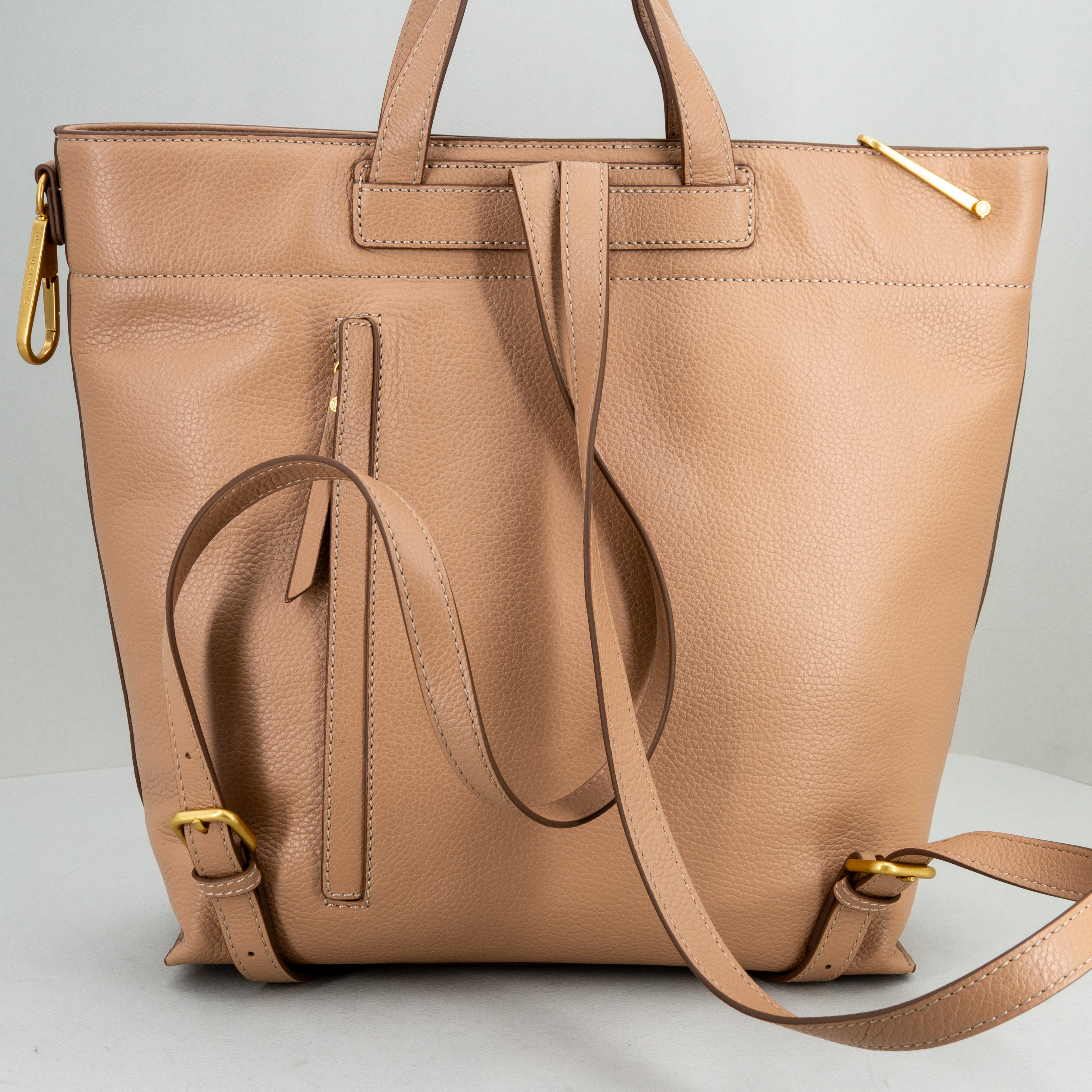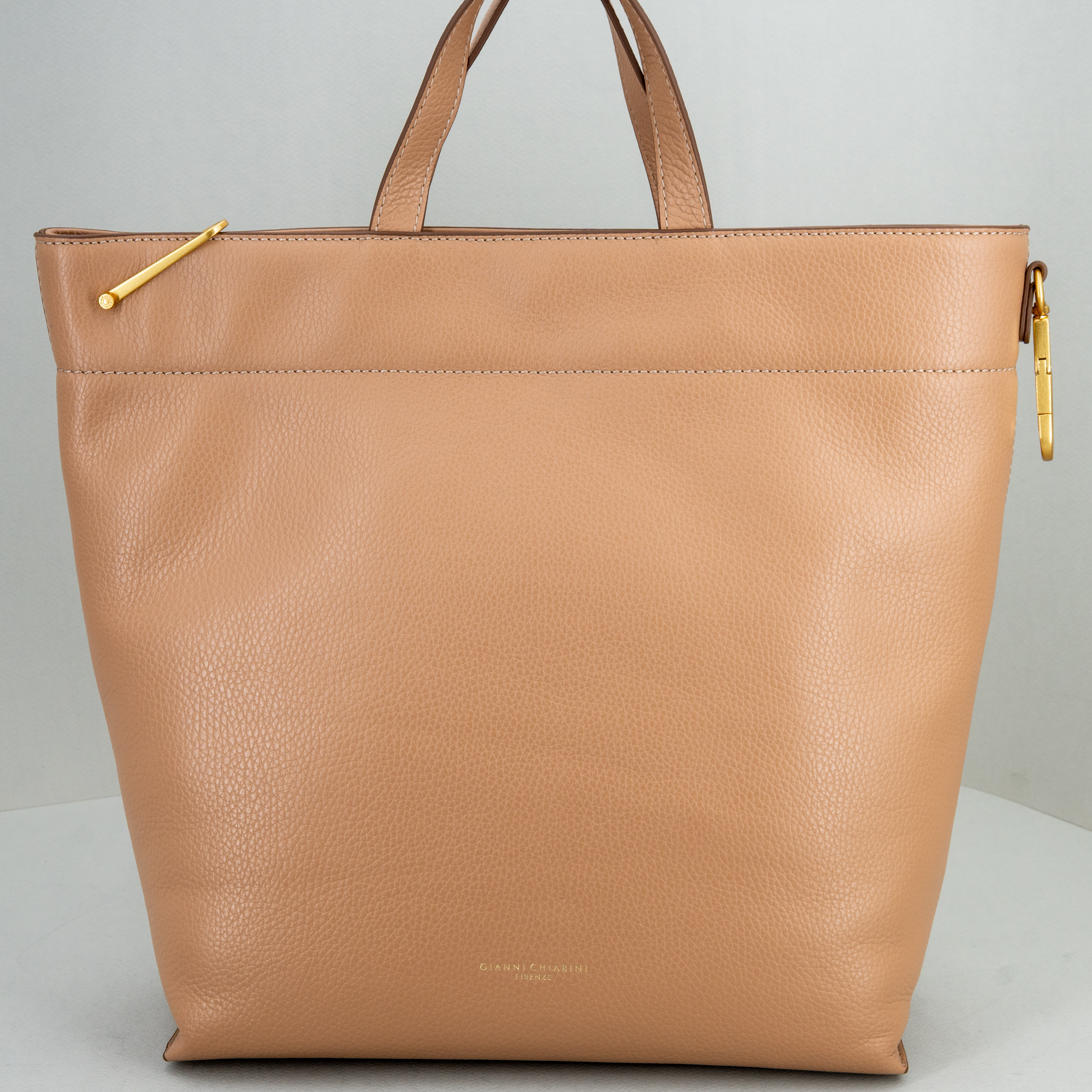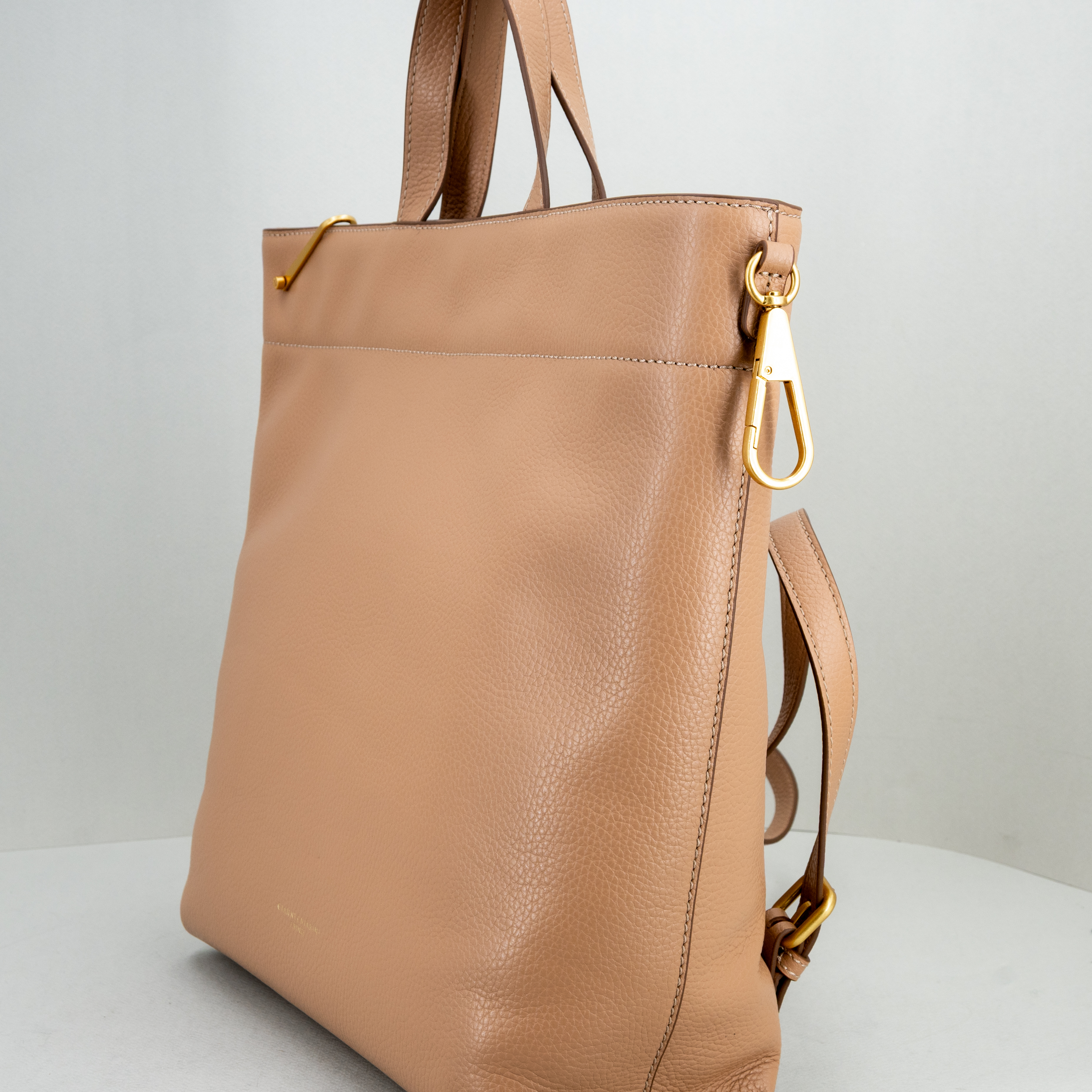 Pratica e super versatile, la nuova borsa shopper di Gianni Chiarini si può trasformare in uno zaino o, unendo i due moschettoni, la borsa diventa più piccola.