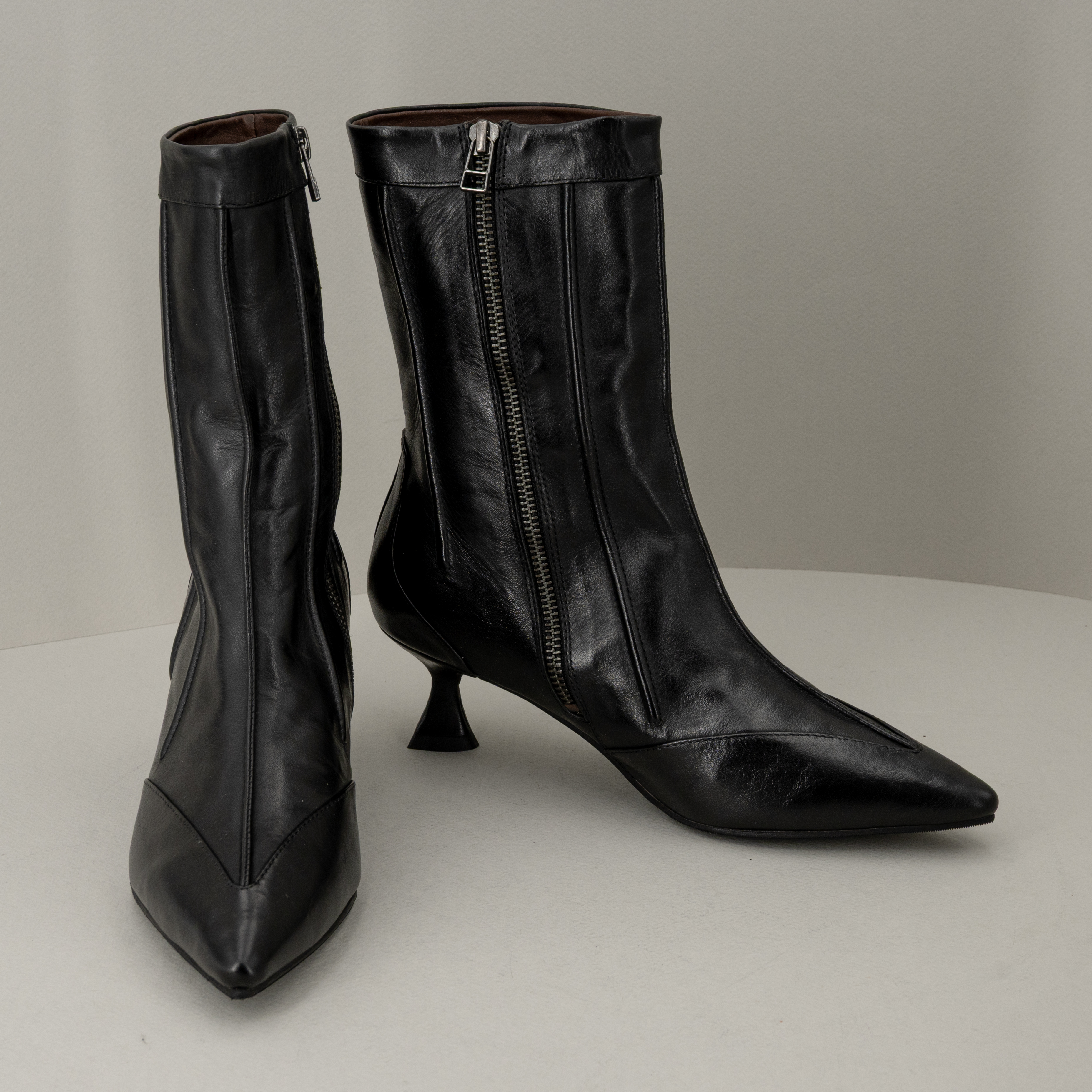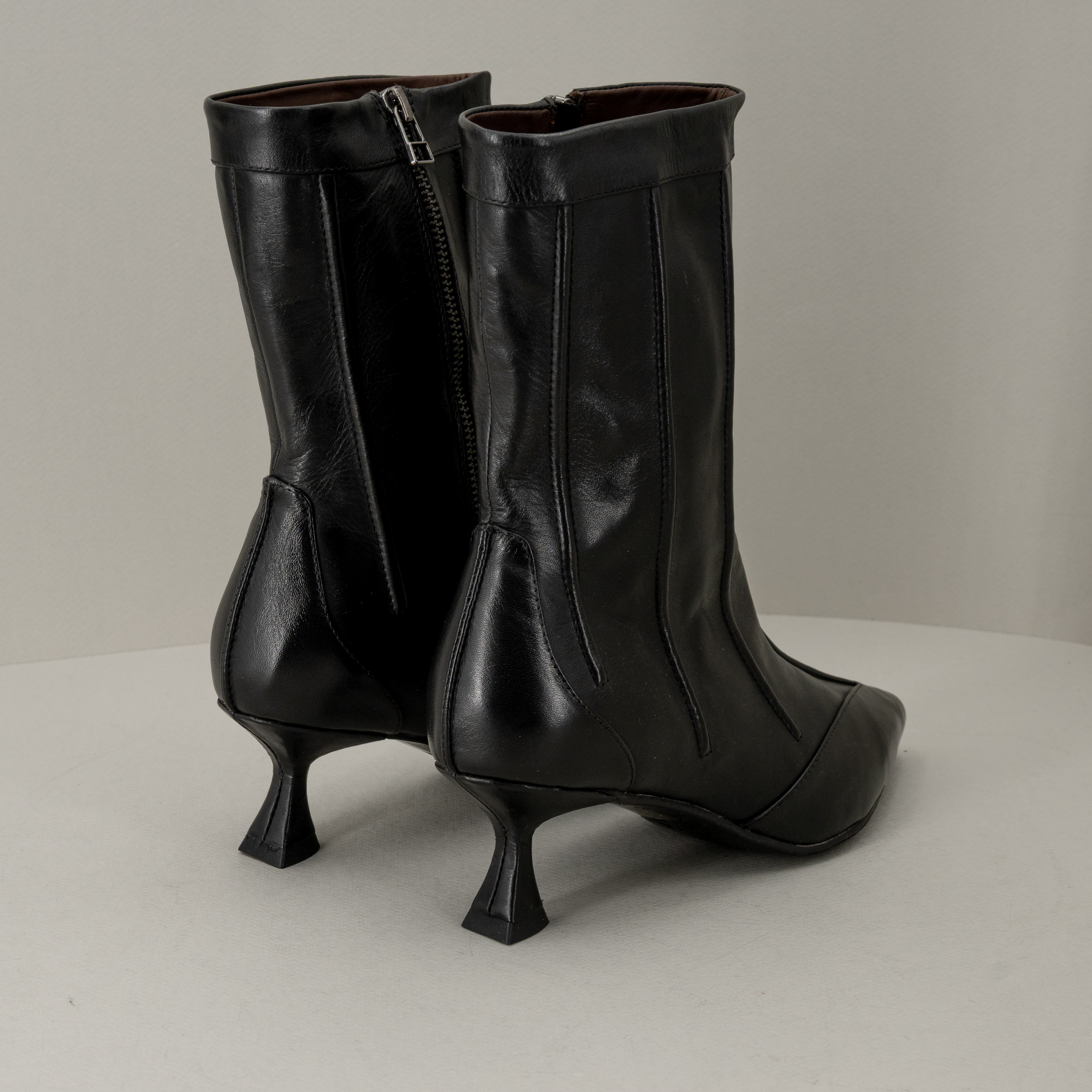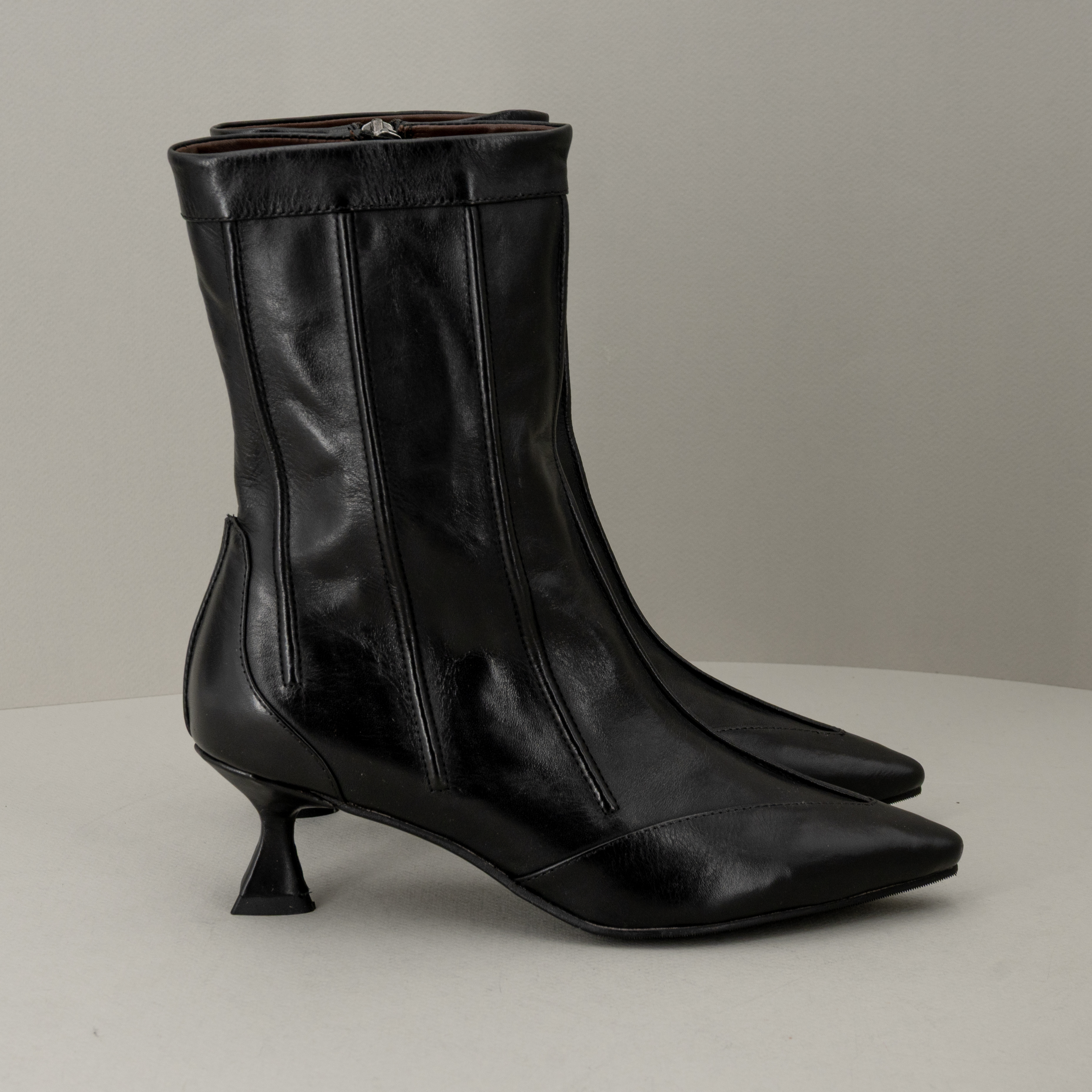 Stivaletto pelle nera tacco basso, comodo dallo stile vintage è in pregiata pelle fatto in Italia. E’ uno stivale donna perfetto con pantaloni o abiti per outfit chic ma sempre comodi.