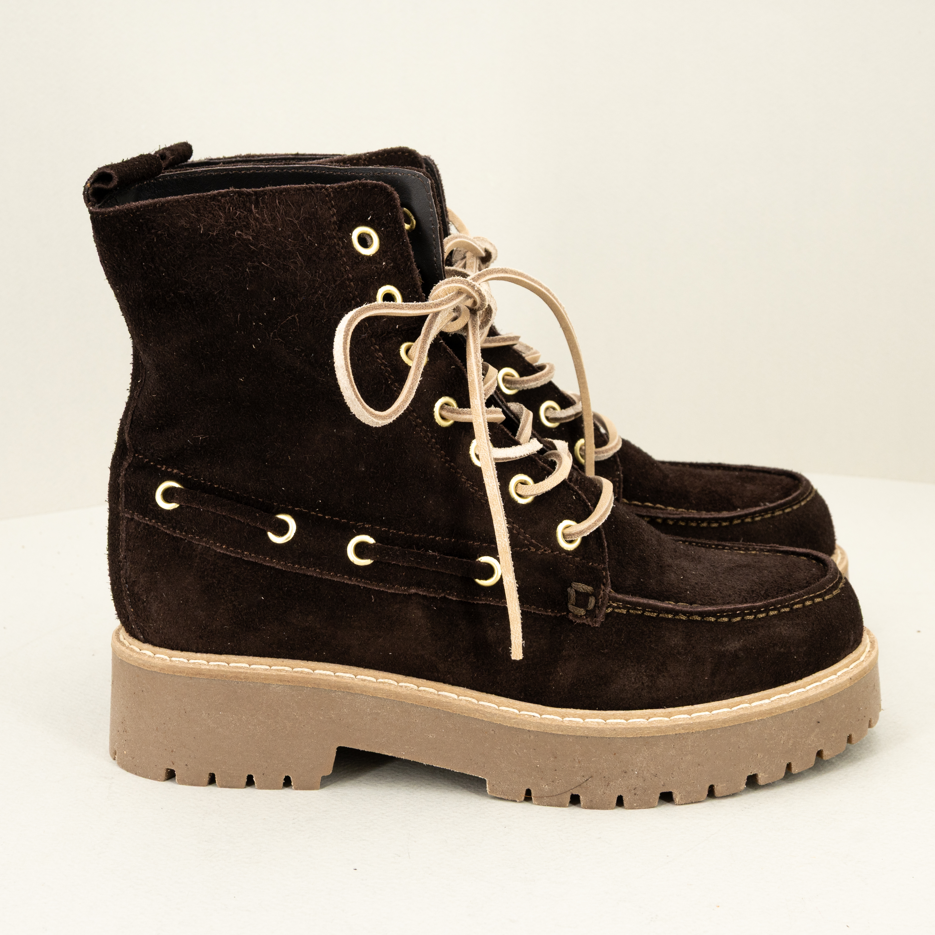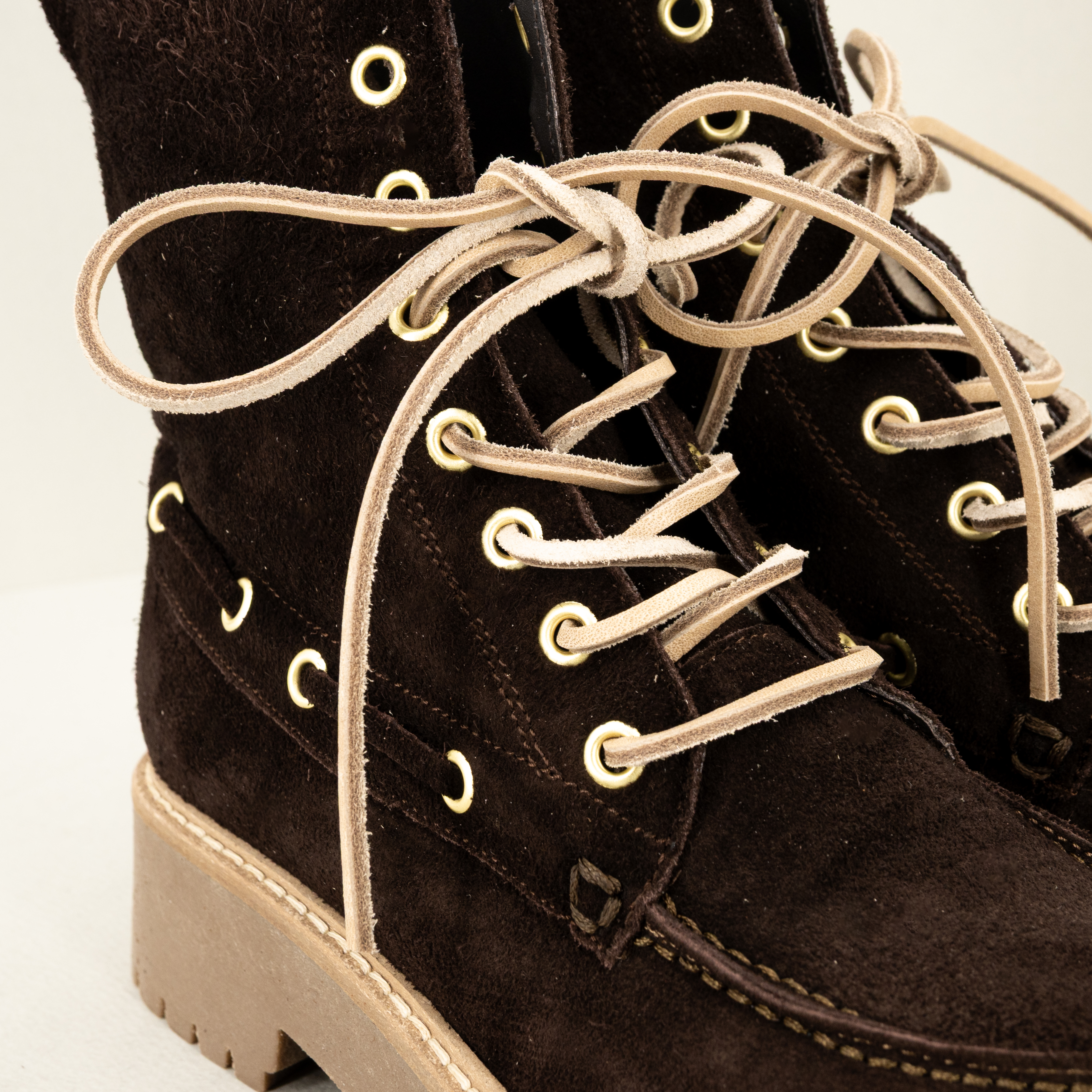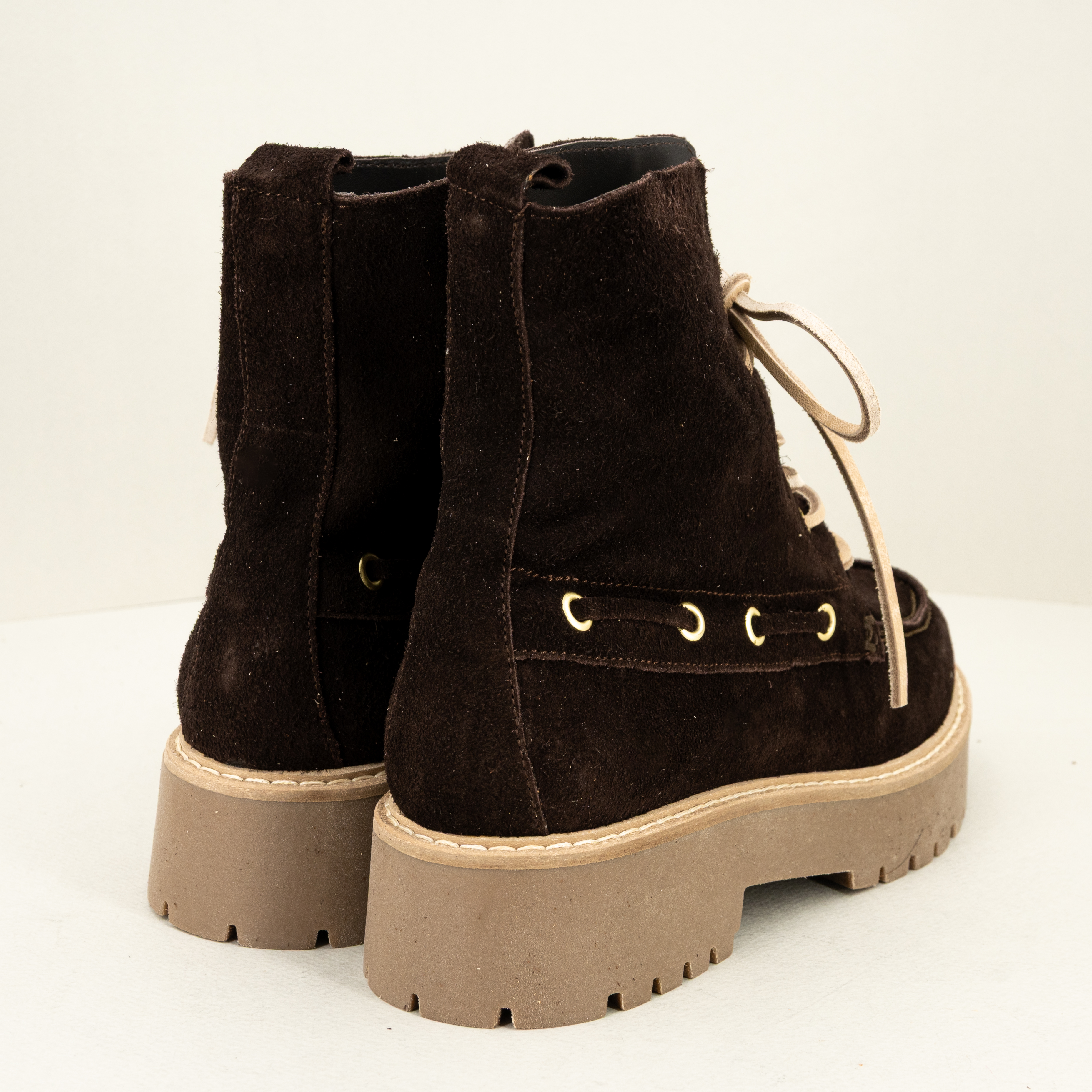 Stivaletto stringato stile anni ’90, fatto in Italia in pelle scamosciata marrone scuro con lacci in cuoio, Un vero tuffo nel passato!